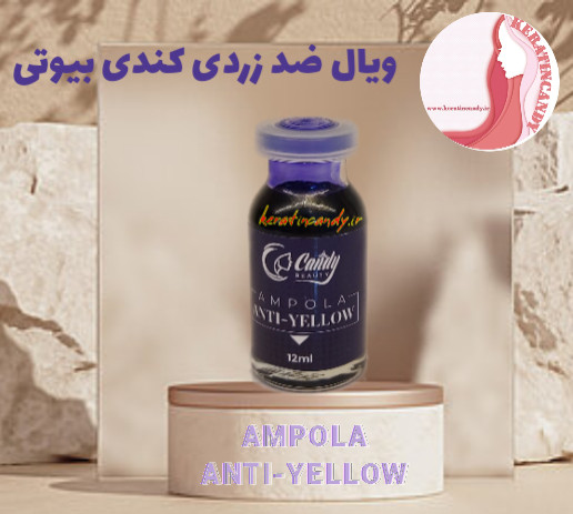 ویال ضد زردی کندی بیوتی با پیگمنت بنفش که روشی است برای از بین بردن رنگ زرد بعد از کراتین تراپی و پروتئینه