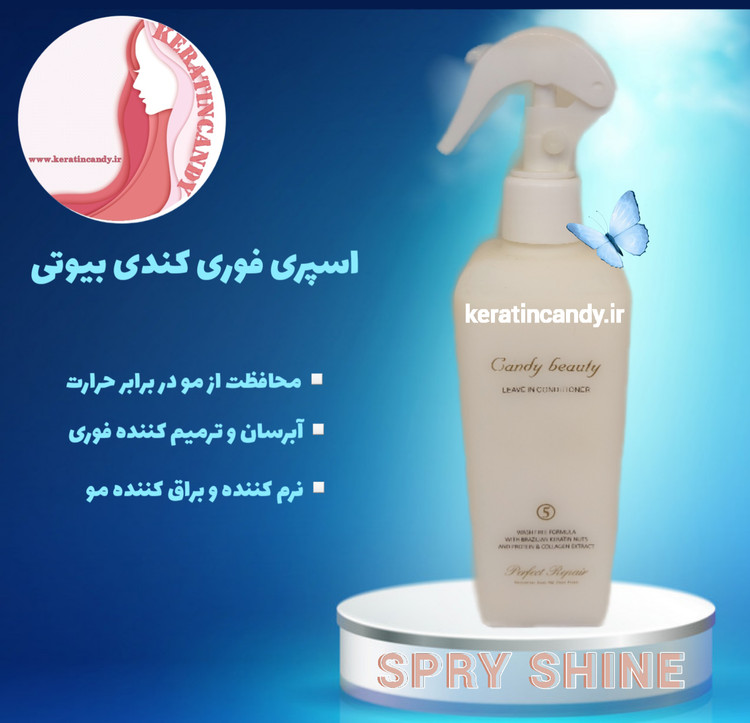 اسپری محافظتی و فوری مو کندی بیوتی حاوی عصاره پروتئین و کلاژن و آجیل کراتین که باعث از بین بردن خشکی و وز موها و نرم کنندگی شدید و براق کنندگی بالا . اسپری کندی بیوتی موها را در برابر حرارت سشوار و اتوی مو مقاوم کرده و در برابر حرارت محافظت میکند.