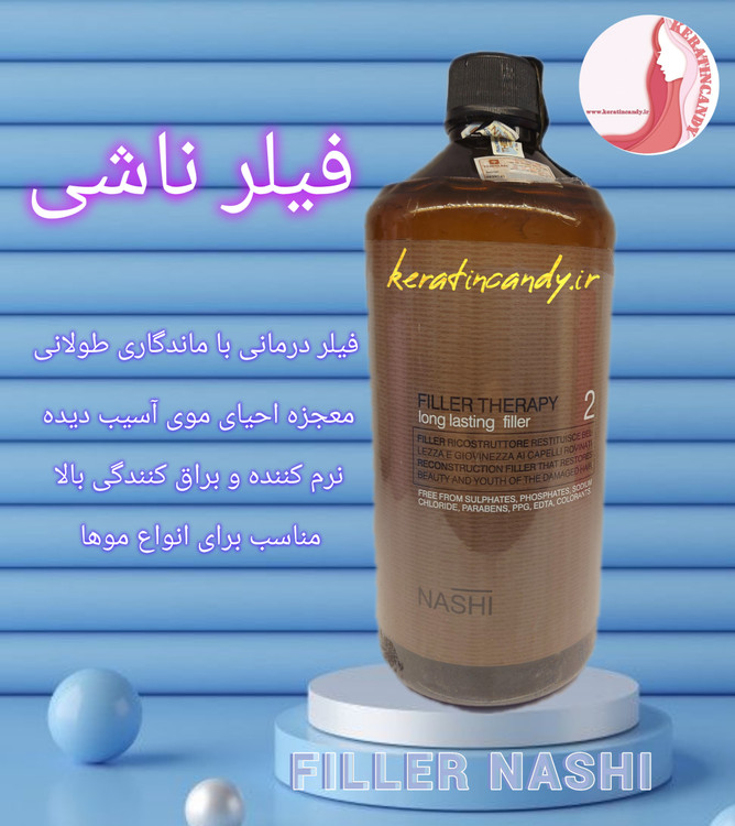 فیلر ناشی ارگانیک و حاوی پروتئین ، کراتین، کلاژن می باشد و برای درمان و احیای موهای آسیب دیده معجزه می کند. ویژگی های فیلر ناشی حاوی روغن آرگان خالص و باعث نرم کنندگی، حالت دهنده، براق کننده شدید مو می شود. این فیلر بدون گاز و بو و ارگانیک بوده و مناسب برای انواع موها و کودکان و بانوان باردار و شیرده می باشد.