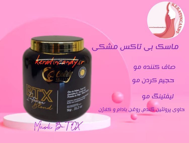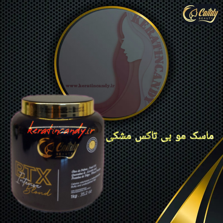 ماسک مو بی تاکس مشکی حاوی روغن پالم و پروتئین گندم. ویژه موهای بی نظم و پراکنده. حجیم کردن مو. صافی مو. ضد زردی مو